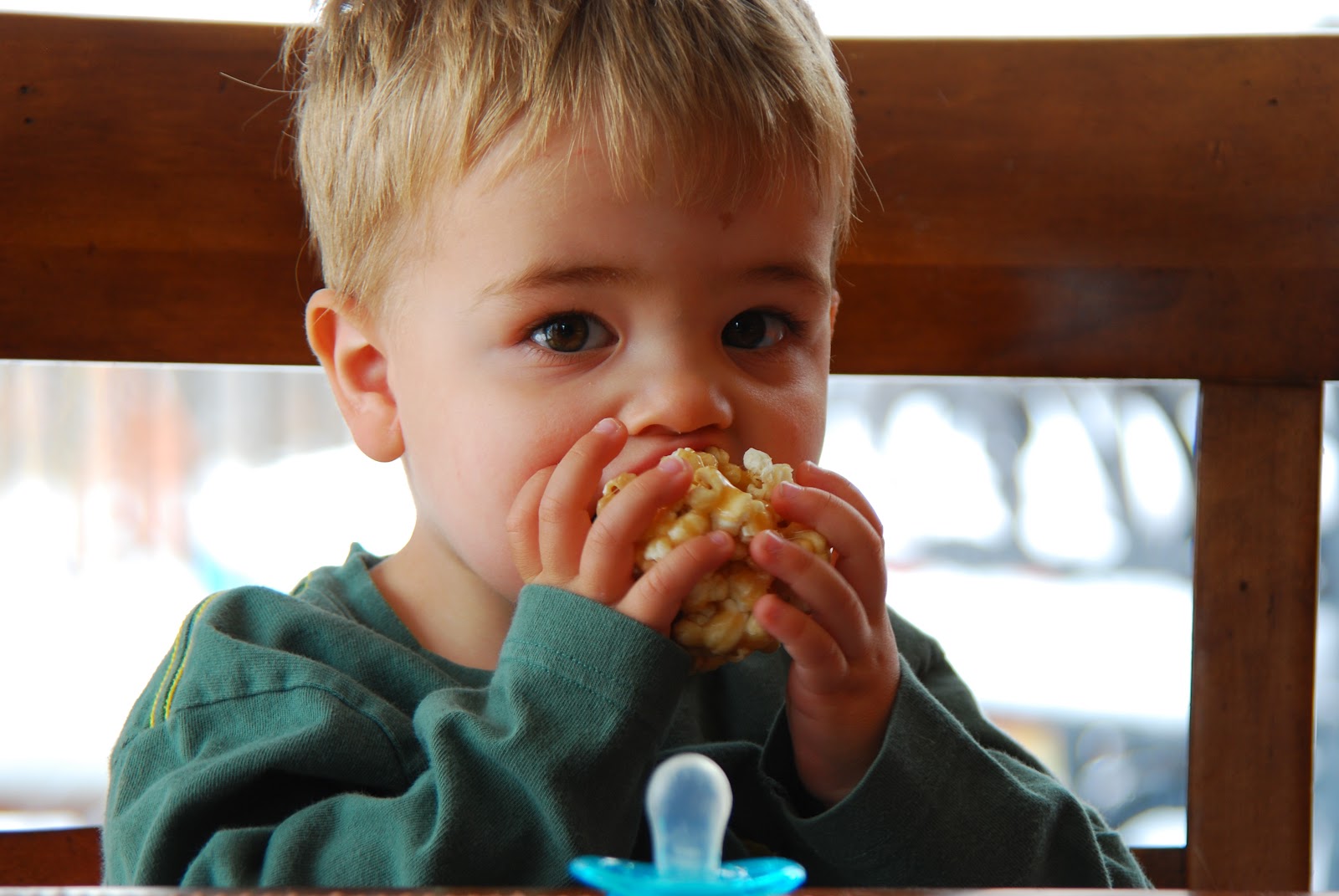 Pondering life's deep questions as he gnaws away on a popcorn ball.